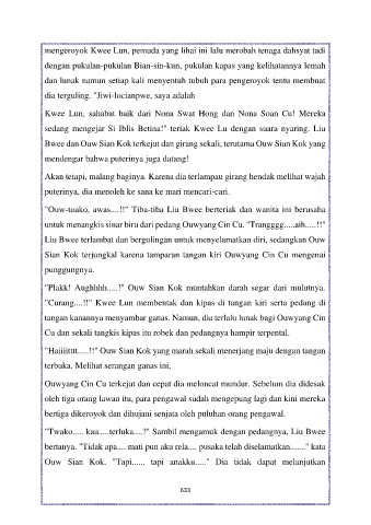 "Haiiiitttt.....!!" Ouw Sian Kok yang marah sekali menerjang maju dengan tangan