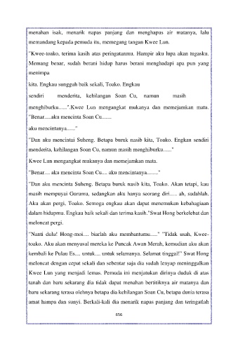 dalam hidupmu. Engkau baik sekali dan terima kasih."Swat Hong berkelebat dan