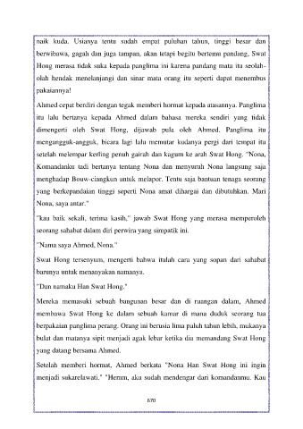 Setelah memberi hormat, Ahmed berkata "Nona Han Swat Hong ini ingin
