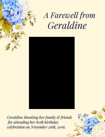 A Farewell from Geraldine Geraldine thanking her family & friends for attending her 80th birthday celebration on November 26th, 2016.
