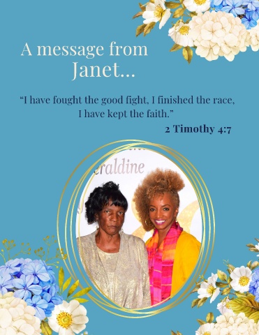 A message from Janet... “I have fought the good fight, I finished the race, I have kept the faith.” 2 Timothy 4:7