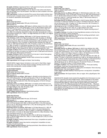 Also keep an eye on: Jr. MLB Terence McGary (5-10, 215), 56 tackles; So. OL Gaven Hicks (6-5, 280); So. RB CJ Banda (5-10, 165); So. DL Ralph Bernard (6-3, 225). Strengths of offense: Return a lot of starters from last year. QB Nico Vasko will be going into his 3rd year as a starter. He rushed for over a 1,000 yards and threw for over 1,000 yards. Mature group of linemen.