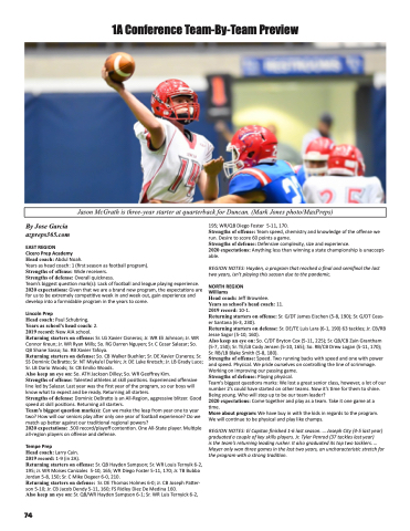 2020 expectations: .500 record/playoff contention. One All-State player. Multiple all-region players on offense and defense.