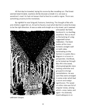 By nightfall he was fatigued, footsore, famishing. The thought of his wife