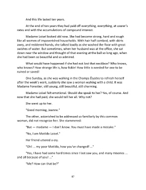 Madame Loisel felt emotional. Should she speak to her? Yes, of course. And