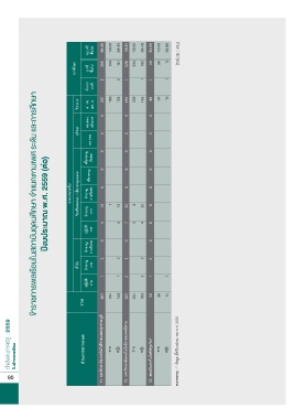 ปีงบประมาณ พ.ศ. 2559 (ต่อ) ข้าราชการพลเรือนในสถาบันอุดมศึกษา จำาแนกตามเพศ ระดับ และการศึกษา ประเภท/ระดับ วิชาชีพเฉพาะ / เชี่ยวชาญเฉพาะ ช�านาญ ช�านาญ ปฎิบัติ เชี่ยวชาญ การพิเศษ การ การ 0 13 4 1 12 4 0 22 7 2 3 20 4 0 0 0