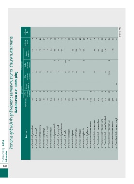 ปีงบประมาณ พ.ศ. 2559 (ต่อ) ข้าราชการ ลูกจ้างประจำา ลูกจ้างชั่วคราว และพนักงานราชการ จำาแนกตามส่วนราชการ ลูกจ้างประจ�า เงินใน ข้าราชการ เงินนอก งบประมาณ งบประมาณ (งบบุคลากร) 16 103 15 114 28 112 19 120 16 100 17 118 19 99 20 93 26 136 10 95 21 120 20 103 19 82 1 24 12 11 58 662 81 423 52 219 59 426 34 275 105 621 57 377 50 55 307