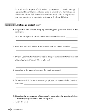 2. How does the writer relate cultural diffusion with the current situation? ______