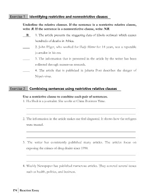 Exercise 1 Identifying restrictive and nonrestrictive clauses