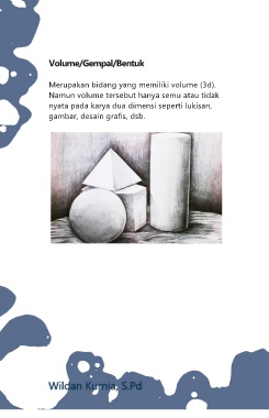 Volume/Gempal/Bentuk Merupakan bidang yang memiliki volume (3d). Namun volume tersebut hanya semu atau tidak nyata pada karya dua dimensi seperti lukisan, gambar, desain grafis, dsb. Wildan Kurnia, S.Pd