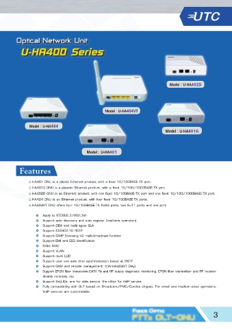 U-HA401G ONU is a plasctic Ethernet product, with a fixed 10/100/1000BASE-TX port.