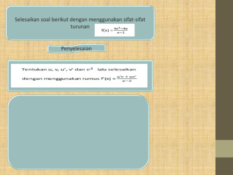 Selesaikan soal berikut dengan menggunakan sifat-sifat turunan Penyelesaian
