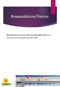 ลักษณะหน้ำต่ำงของโปรเเกรม เมื่อเรียกใช้งำนโปรแกรม Adobe PhotoShop (ตัวอย่ำงที่แนะน ำคือ Adobe PhotoShop 6.0) จะปรำกฏหน้ำต่ำงกำรท ำงำน ดังนี้ 2