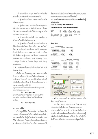 นำข้อมูลที่ได้มาวิเคราะห์ความผันแปรใน แปรปรวนคือชิ้นงาน พนักงานวัดและอิทธิพลร่วม