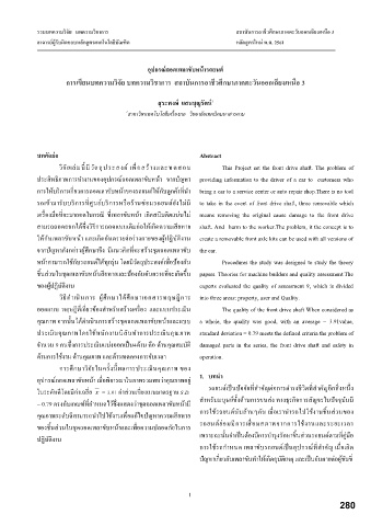 วิจัยเล่มนี้ มีวัตถุประสงค์ เพื่อสร้างและทดสอบ This Project set the front drive shaft. The problem of
