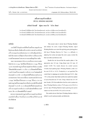 ผลจากการทดสอบปรากฏว่าเครื่องควบคุมหัวกรออีแปะ The results showed that Spool Winding Machine which a