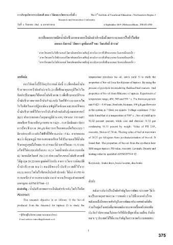 บทคัดย่อ temperature pyrolysis bio oil, sato's yield 3) to study the