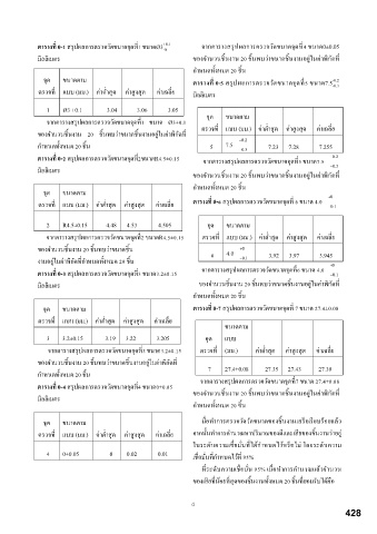 ตารางที่ 0-2 สรุปผลการตรวจวัดขนาดจุดที่2ขนาดR4.5±0.15 จากตารางสรุปผลการตรวจวัดขนาดจุดที่5 ขนาด7.5 − 2 . 0