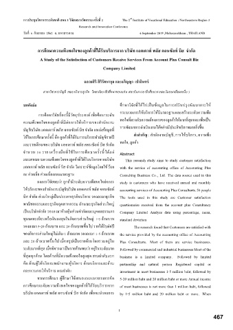 ใช้ในการศึกษาครั้งนี้ คือ ลูกค้าที่ได้รับการบริการท าบัญชีรายปี คําสําคัญ : ส านักงานบัญชี, การให้บริการ, ความพึง