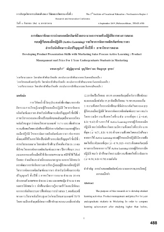 การพัฒนาทักษะการน าเสนอผลิตภัณฑ์ด้วยกระบวนการขายเชิงปฏิบัติการทางการตลาด