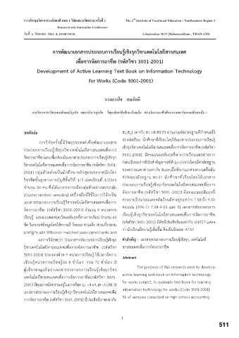 2001) มีคุณภาพโดยรวมอยู่ในมากที่สุด (µ =4.69, =0.28) 3) for works subject, to evaluate text book for learning