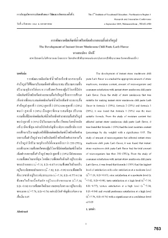 การพัฒนาผลิตภัณฑ์น ้าพริกเห็ดฟางรสลาบกึ่ง paste Larb flavor is a studied the appropriate amount of straw