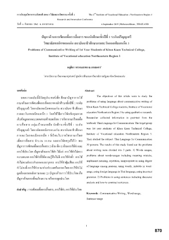Problems of Communicative Writing of 1st Year Students of Khon Kaen Technical College,