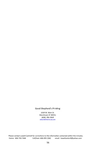 Please contact Lowell Cantrell for corrections to the information contained within the minutes.