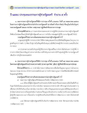 ๑) คณะกรรมการผู้ช่วยรัฐมนตรีได้เสนอแนะเกี่ยวกับการพัฒนาระบบ NSW
