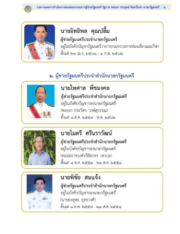 รายงานผลการด าเนินงานของคณะกรรมการผู้ช่วยรัฐมนตรี รัฐบาล พลเอก ประยุทธ์ จันทร์โอชา นายกรัฐมนตรี : 6 ๒. ผู้ช่วยรัฐมนตรีประจ าส านักนายกรัฐมนตรี