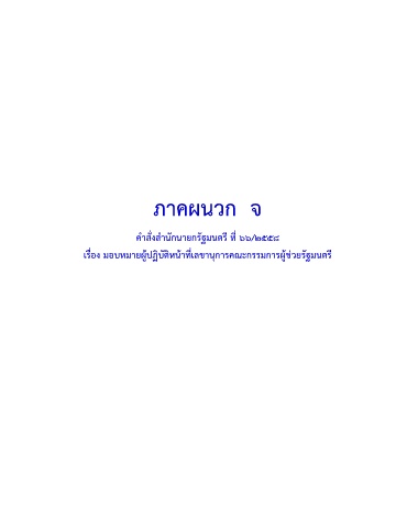 ภาคผนวก จ ค าสั่งส านักนายกรัฐมนตรี ที่ ๖๖/๒๕๕๘ เรื่อง มอบหมายผู้ปฏิบัติหน้าที่เลขานุการคณะกรรมการผู้ช่วยรัฐมนตรี