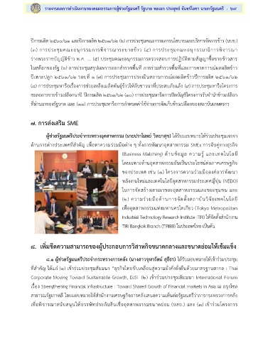 ด้านการต่างประเทศที่ส าคัญ เพื่อหาความร่วมมือต่าง ๆ ทั้งการพัฒนาอุตสาหกรรม SMEs การจับคู่ทางธุรกิจ