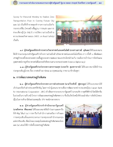เข้าร่วมหารือกับต่างประเทศที่ส าคัญ โดยการน าผู้แทนธนาคารเพื่อการพัฒนาระหว่างประเทศญี่ปุ่น (Japan Bank