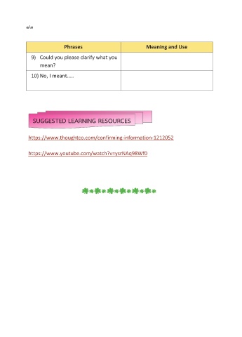 ๑๒ Phrases Meaning and Use ϵͿ ŽƵůĚ LJŽƵ ƉůĞĂƐĞ ĐůĂƌŝĨLJ ǁŚĂƚ LJŽƵ ŵĞĂŶ͍ 10Ϳ EŽ͕ / ŵĞĂŶƚ͙͘͘ SUGGESTED LEARNING RESOURCES ŚƚƚƉƐ͗ͬͬǁǁǁ͘ƚŚŽƵŐŚƚĐŽ͘ĐŽŵͬĐŽŶĨŝƌŵŝŶŐ-iŶĨŽƌŵĂƚŝŽŶ-ϭϮϭϮϬϱϮ ŚƚƚƉƐ͗ͬͬǁǁǁ͘LJŽƵƚƵďĞ͘ĐŽŵͬǁĂƚĐŚ͍ǀсLJƐƌE ƋϵϴtĨϬ