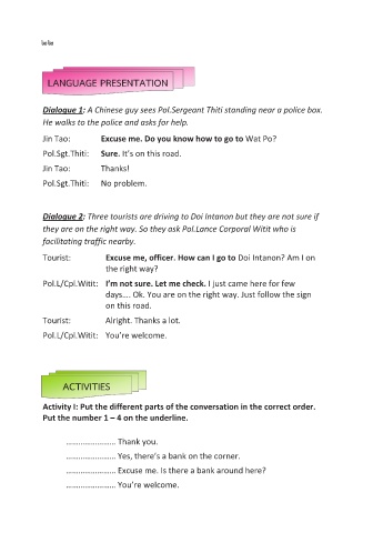 Dialogue 2: Three tourists are driving to Doi Intanon but they are not sure if