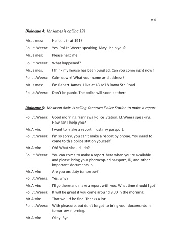 Dialogue 5: Mr.Jason Alvin is calling Yannawa Police Station to make a report.