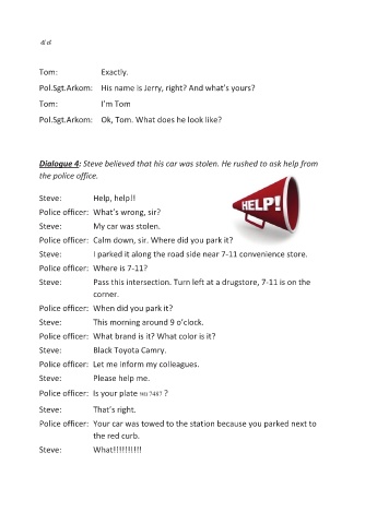 Dialogue 4: Steve believed that his car was stolen. He rushed to ask help from He rusheedddd ttttttoooooo aaaaaassssskkk hhelp fro