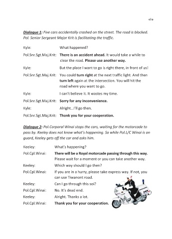 Dialogue 2: Pol.Corporal Winai stops the cars, waiting for the motorcade to