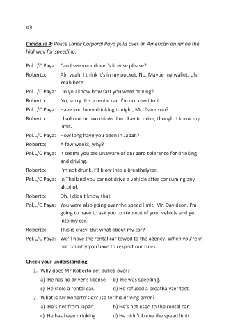 Dialogue 4: Police Lance Corporal Paya pulls over an American driver on the