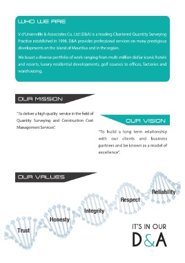 V d’Unienville & Associates Co. Ltd (D&A) is a leading Chartered Quantity Surveying