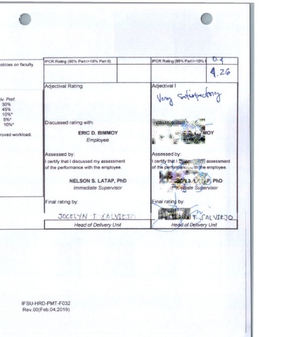 II For faculty members with designation, % weight allocation shall be pro-rated based on approved workload ERIC D. BIMMOY MOY