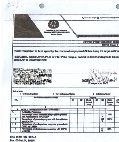 ISERAfIN L NGOFtAYCN, Pb,D. of IFSU Potia Campus, commit to deliver and agree to be rated on the attainment of the blowing targets in indcated measure for tthe