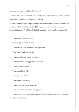 10.1 Acts of Misconduct การปฏิบัติงานที่ไม่พึ่งประสงค์