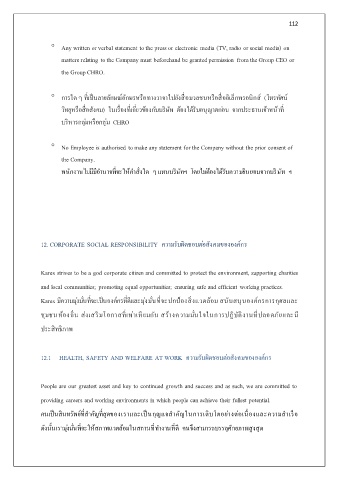 12.1 HEALTH, SAFETY AND WELFARE AT WORK ความรับผิดชอบต่อสังคมขององค์กร