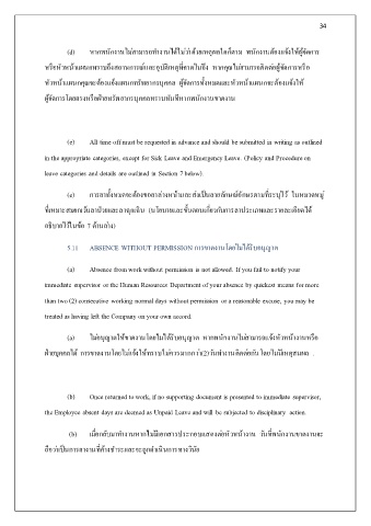 5.11 ABSENCE WITHOUT PERMISSION การขาดงานโดยไม่ได้รับอนุญาต