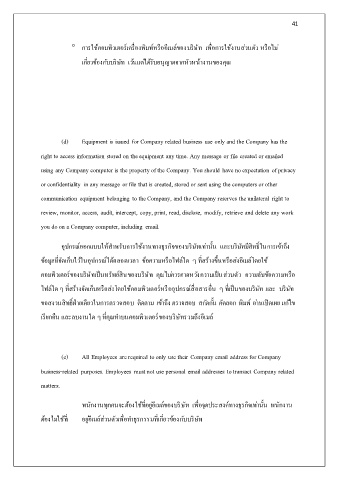 พนักงานทุกคนจะต้องใช้ที่อยู่อีเมล์ของบริษัท เพื่อจุดประสงค์ทางธุรกิจเท่านั้น พนักงาน
