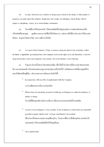 (e) ในฐานะส่วนหนึ่งของนโยบายของบริษัท เพื่อให้มั่นใจว่าสถานที่ทํางานปราศจากยาเสพ