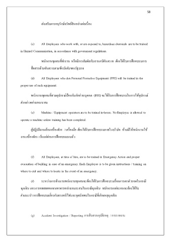 (g) Accident Investigation / Reporting การสืบสวนอุบัติเหตุ / การรายงาน