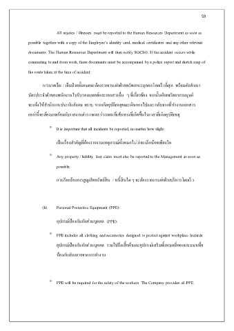 การบาดเจ็บ / เจ็บป่วยทั้งหมดจะต้องรายงานต่อฝ่ายทรัพยากรบุคคลโดยเร็วที่สุด พร้อมกับสําเนา