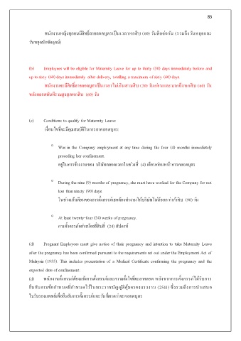 พนักงานจะมีสิทธิ์ลาคลอดบุตรเป็นเวลาไม่เกินสามสิบ (30) วันก่อนและมากถึงหกสิบ (60) วัน